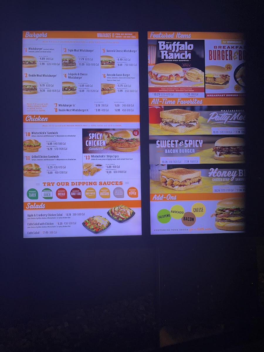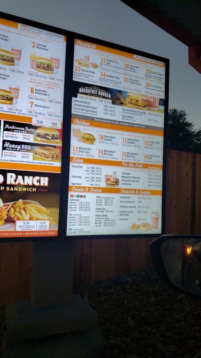 Beyond burgers, the menu features fresh salads such as the Garden Salad with grilled chicken and the more indulgent Cobb Salad packed with bacon, eggs, and shredded cheese. For a sweet finish, their cinnamon rolls, hot apple pies, and brownies offer comforting desserts rich in flavor. The balance between indulgent comfort food and lighter options makes Whataburger a versatile choice for every meal.